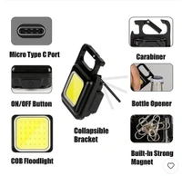 Rechargeable Keychain Mini Flashlight with 4 Light Modes,Ultralight Portable Pocket Light with Folding Bracket Bottle Opener and Magnet Base for Camping Walking