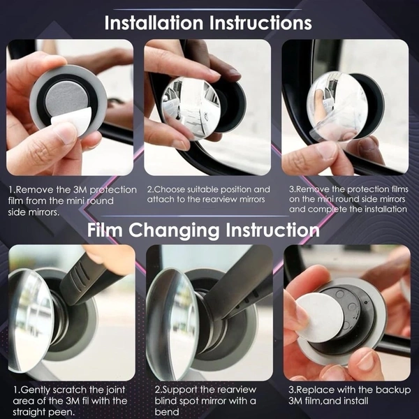 360 Degree 2 pieces packaged, newest upgrade 360 degree rotate and sway adjustable, maximize your view with wide angle in car. All convex spot mirrors are equipped with tiny adjustable swivel mounting bracket for easy installation.